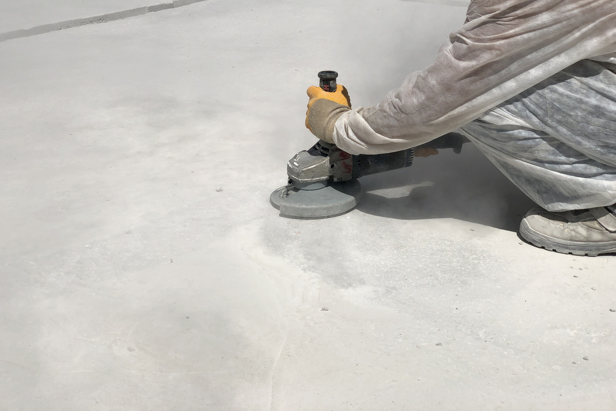 Le meulage est une étape essentielle lorsque la surface présente des imperfections, des résidus ou des irrégularités. Cette intervention permet de corriger les défauts et de préparer le béton pour obtenir une finition uniforme.